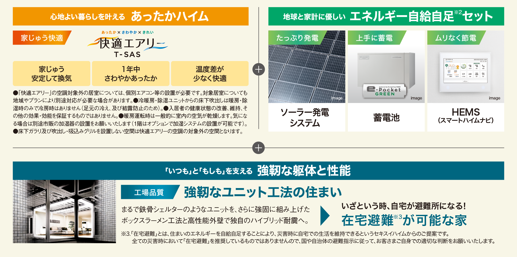 【募集について】●今回募集する「あったかハイム スマート&レジリエンスSTYLE特設展示場」はAコース毎月先着10邸・Bコース毎月先着30邸、お申し込み期限は2026年3月31日(火)まで。ご成約邸数に達し次第、受付を終了させていただきます。※それぞれ他のキャンペーン特典との併用はできません。※詳しくは営業担当にお尋ねください。