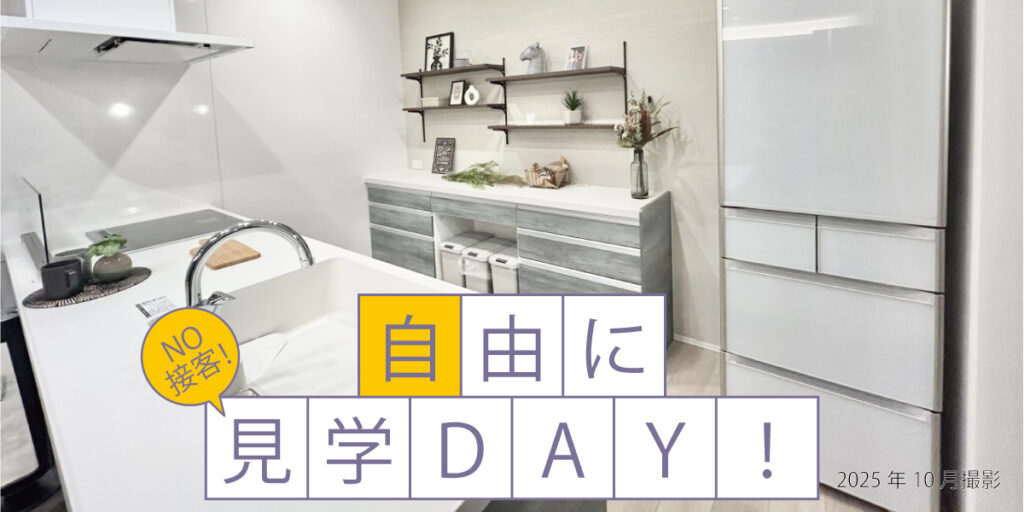※「自由に見学DAY」「NO接客!」とはご見学中にスタッフが接客しないことを指しております。もちろん何か気になることや、質問がある際にはお近くのスタッフまでお声掛けいただきますとご対応させていただきます。