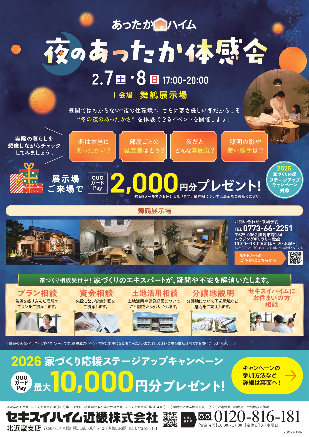 夜のあったか体感会2/7~2/8@舞鶴展示場