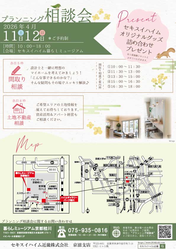 - セキスイハイム暮らしミュージアム京都桂川 TEL.075-935-0816