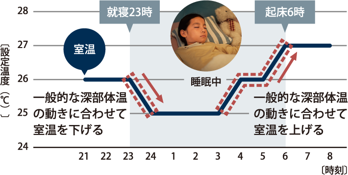 ※13 この製品は自動的に眠りや体温を検知して室温を調整するわけではありません。室温が変化する時間は、お客様にて変更いただきます。