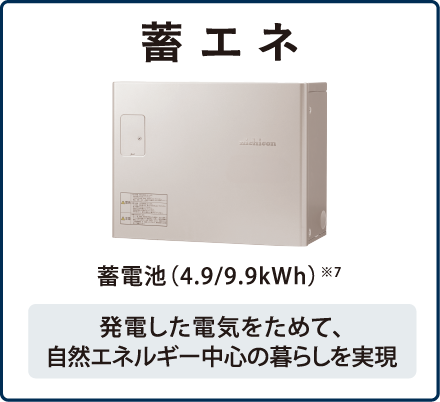 これにより、電力消費を抑える省エネ、電力をつくる創エネ、電力を貯める畜エネが可能に。