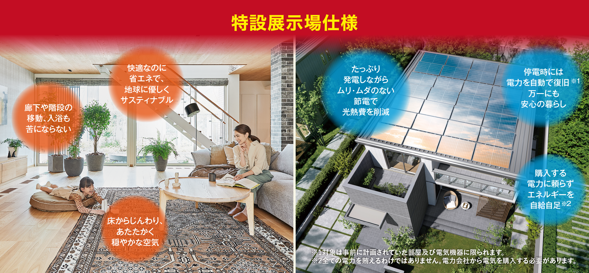 【募集について】●今回募集する「あったかハイム スマート&レジリエンスSTYLE特設展示場」はAコース毎月先着10邸・Bコース毎月先着30邸、お申し込み期限は2026年3月31日(火)まで。ご成約邸数に達し次第、受付を終了させていただきます。※それぞれ他のキャンペーン特典との併用はできません。※詳しくは営業担当にお尋ねください。