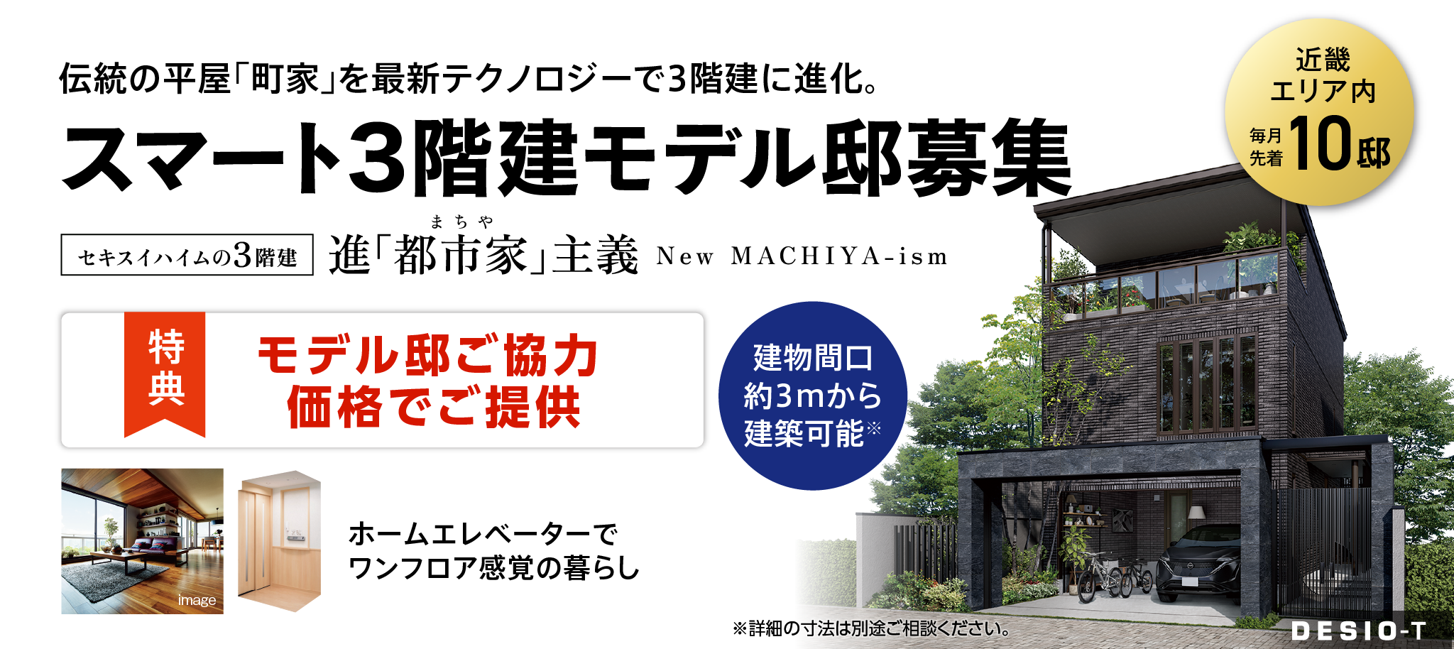 【募集について】●今回募集する「スマート3階建モデル邸」は毎月先着10邸です。ご成約邸数に達し次第、受付を終了させていただきます。※それぞれ他のキャンペーン特典との併用はできません。※詳しくは営業担当にお尋ねください。